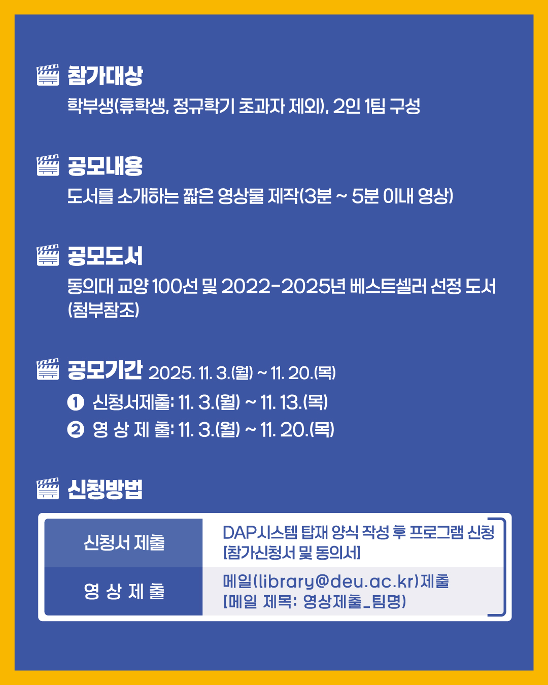 [ [대학혁신지원사업] 중앙도서관 '영상 공모전' 프로그램 모집 안내 ]