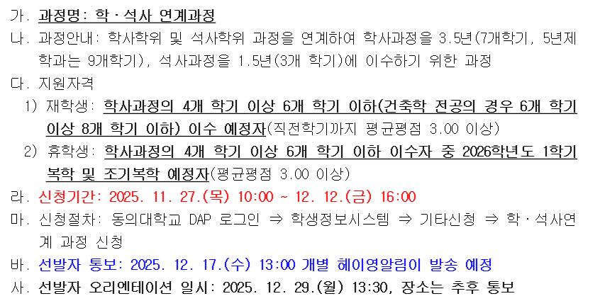 [2026학년도 1학기 학·석사 연계과정 신청 안내]
